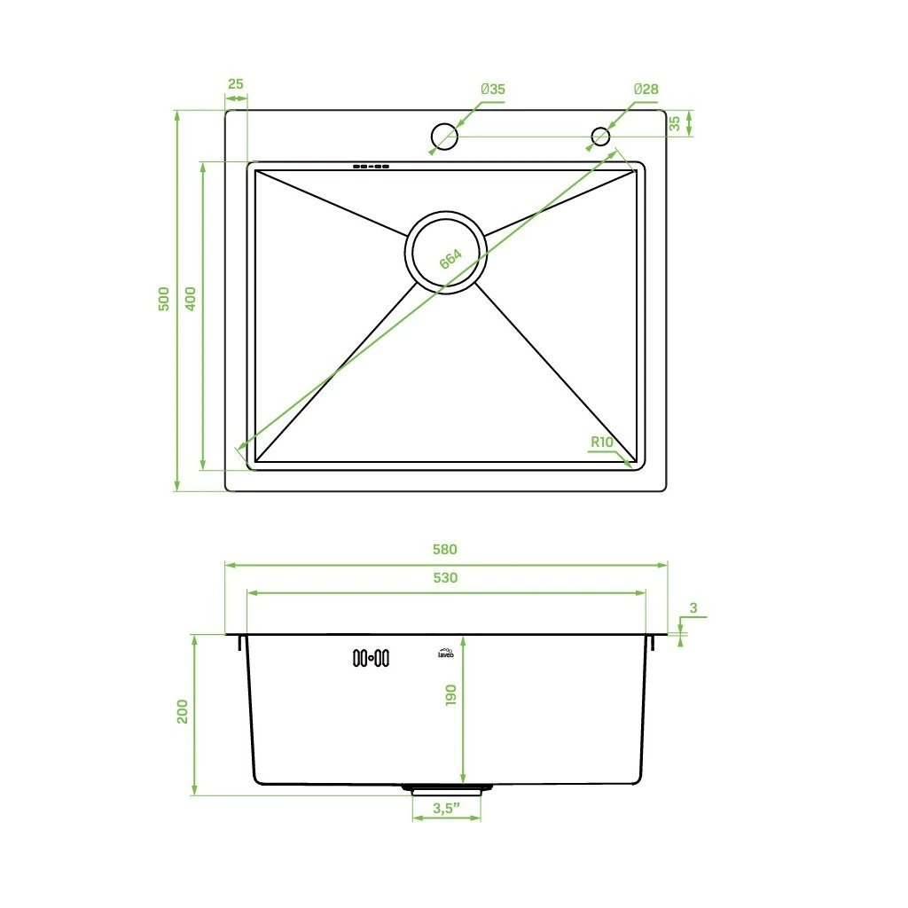 Laveo Malawi, chiuvetă din oțel inoxidabil cu 1 compartiment 580x500x200 mm, grafit, LAV-SLM_510T