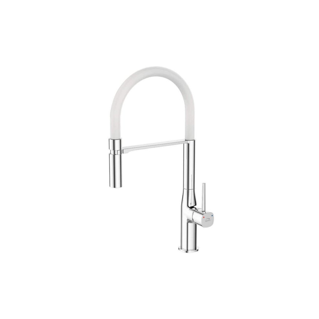 Laveo Pola, baterie de chiuvetă înaltă cu gura de scurgere în formă de U, alb-crom, LAV-BAP_678D