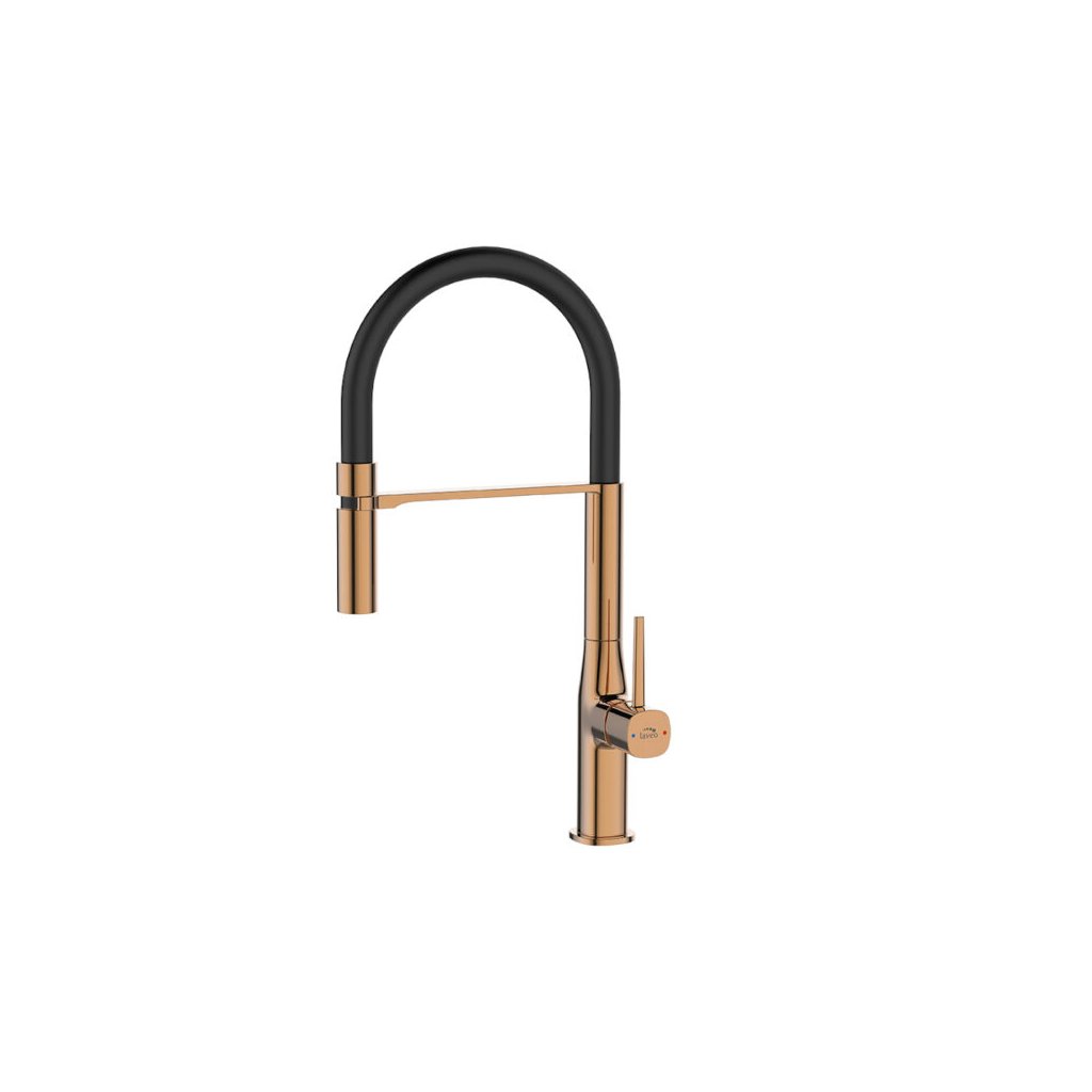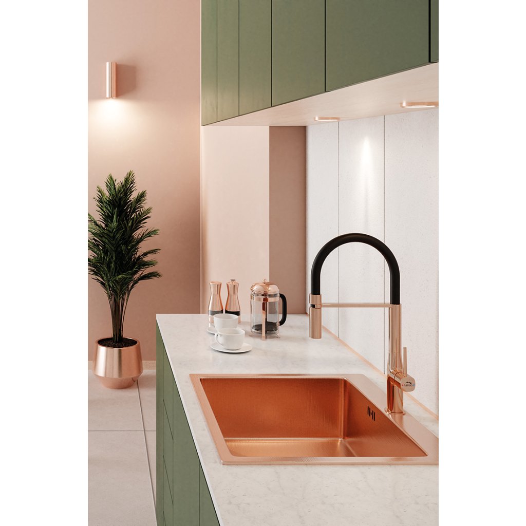 Laveo Pola, baterie de chiuvetă înaltă cu gura de scurgere în formă de U, auriu roz-negru, LAV-BAP_878D