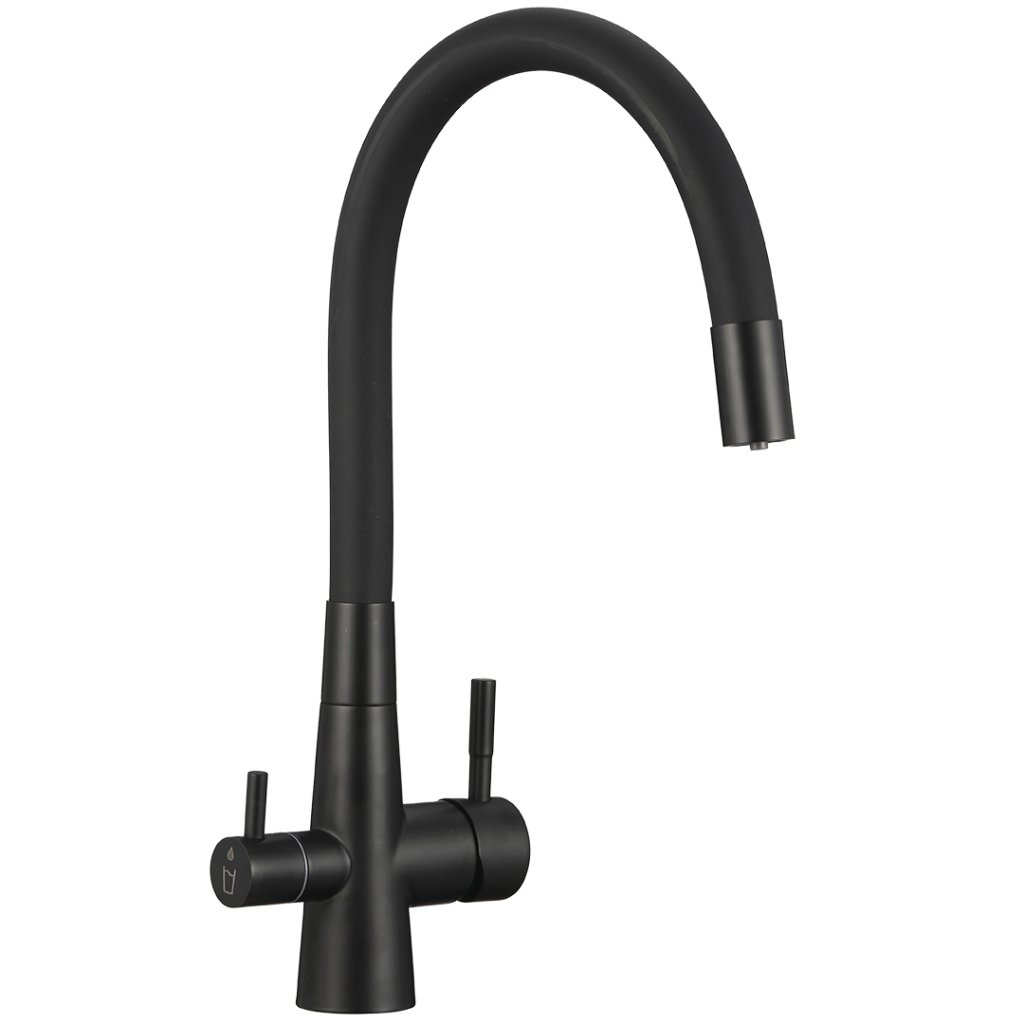 Laveo Riveco, baterie înaltă pentru chiuvetă cu cioc flexibil și racord pentru apă filtrată, negru mat, LAV-BRI_B68D