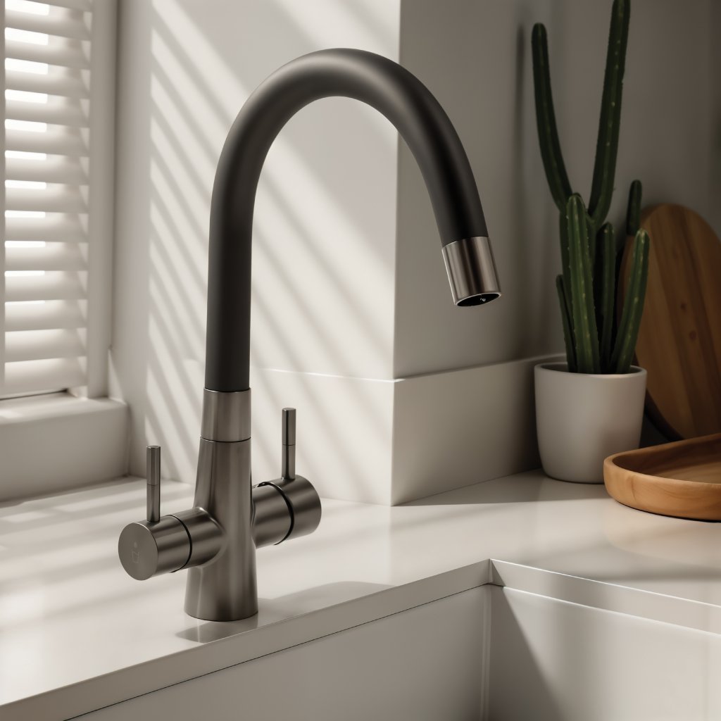 ✅ Două pârghii independente pentru control complet și separare igienică a apei filtrate.