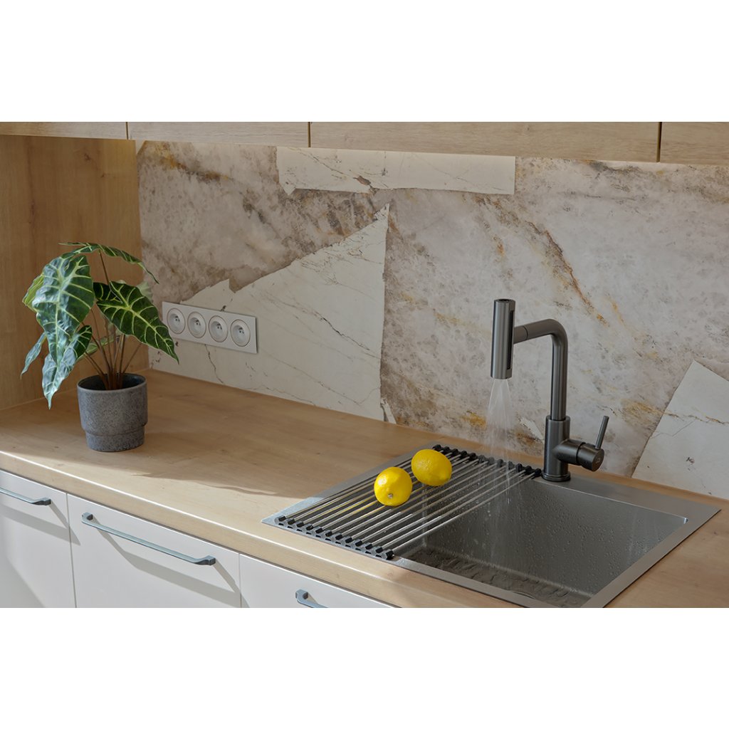 Rotaro nu este doar un stil distinctiv, ci mai presus de toate, confort în utilizarea de zi cu zi. Duza extensibilă și pivotantă vă oferă libertate totală de mișcare și vă permite să direcționați cu precizie fluxul de apă. Acest lucru face ca fiecare activitate din bucătărie să fie mai ușoară, mai convenabilă și mai intuitivă.