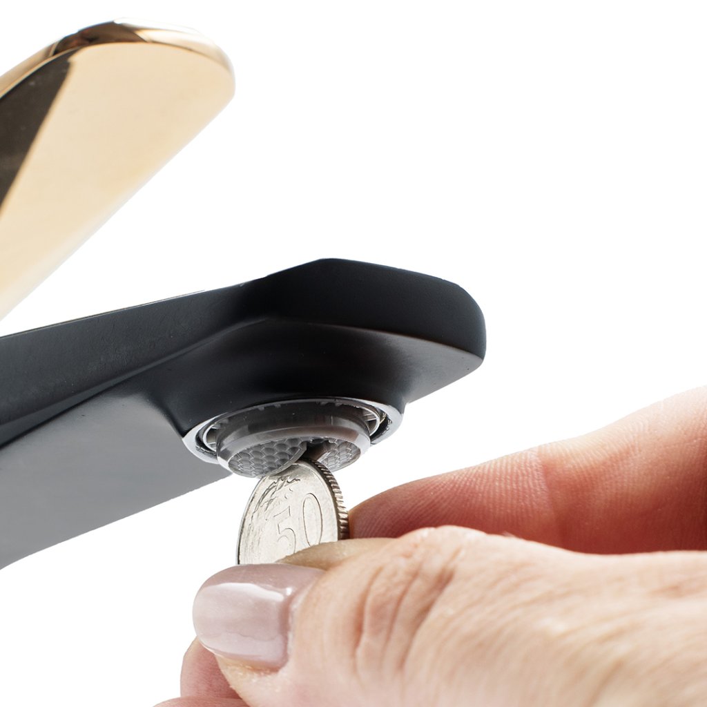 Bateriile pe stand Rubio sunt destinate instalarii in chiuvete cu orificiu pre-forat pentru robinete. Cea mai la modă combinație de aur alb și galben face recent modelul ideal pentru a sublinia caracterul elegant al băii. Corpul bateriei și pârghia sunt decorate cu teșituri blânde pe margini, care seamănă cu pietre prețioase lustruite. Datorită clasei de debit redus, modelul vă permite să reduceți consumul de apă, ceea ce se traduce prin facturi mai mici. Bateria are un sistem simplu de instalare, fără a folosi unelte. Datorită acestui lucru, îl putem instala cu ușurință singuri. Setul de robinet include un dop de scurgere ClickClack pentru a se potrivi cu culoarea pârghiei aurii, ceea ce vă permite să închideți și să deschideți scurgerea cu o singură apăsare.