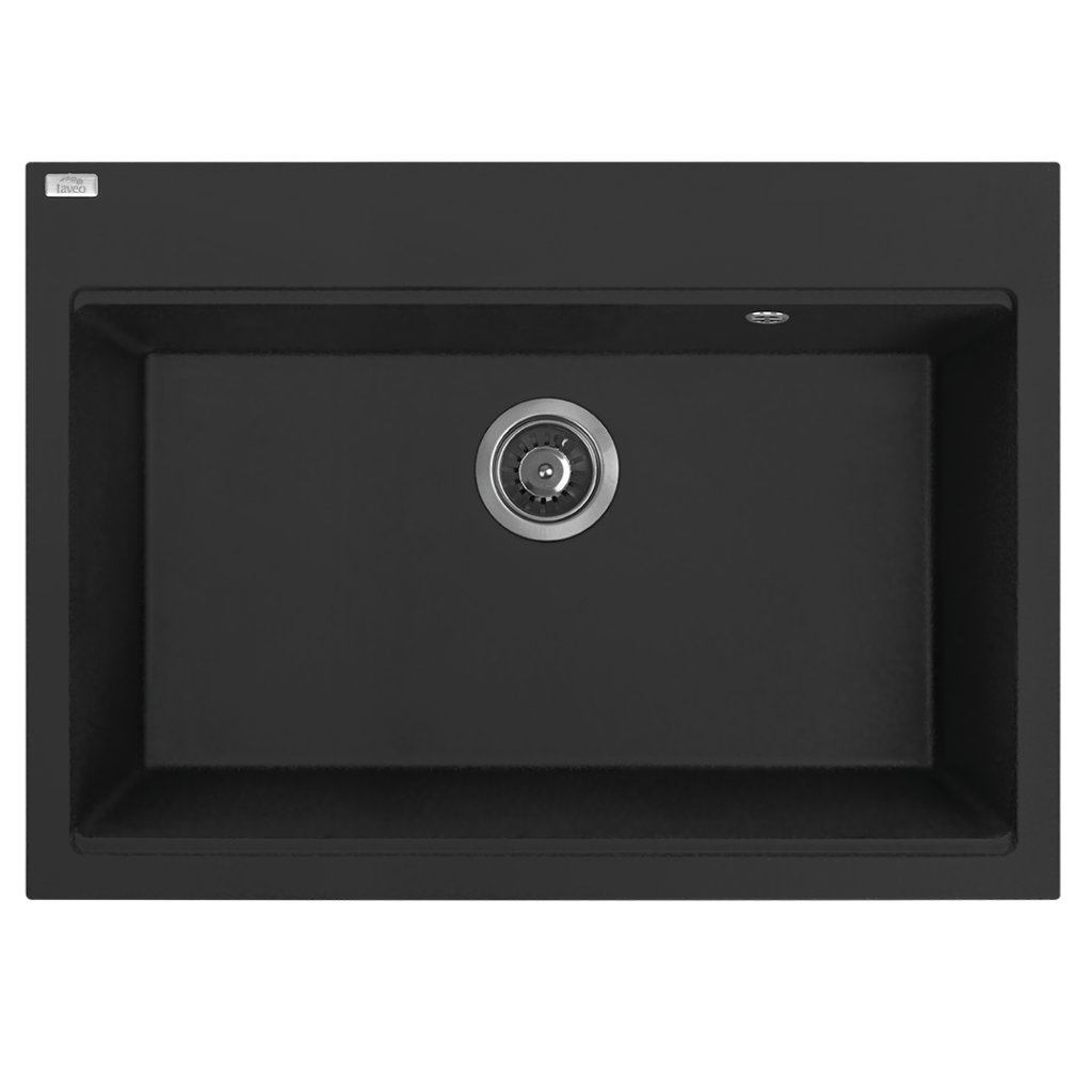 Laveo Tau, chiuvetă din granit cu 1 compartiment 700x500x215 mm, neagră, LAV-SBT_B107