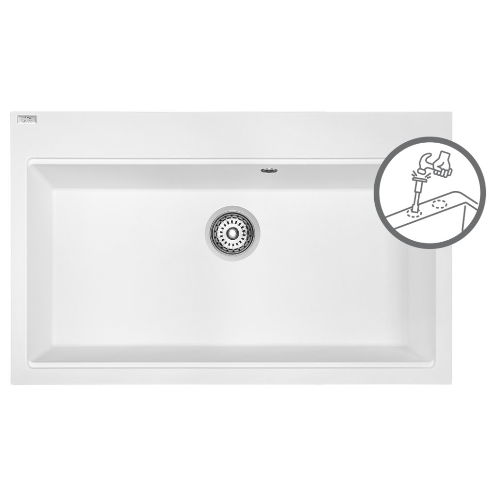 Laveo Tau, chiuvetă din granit cu 1 compartiment 800x500x215 mm, albă, LAV-SBT_6108