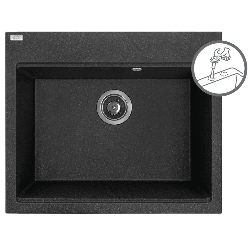 Laveo Tau, chiuveta granit cu 1 camera 600x500x215 mm, negru, LAV-SBT_7106