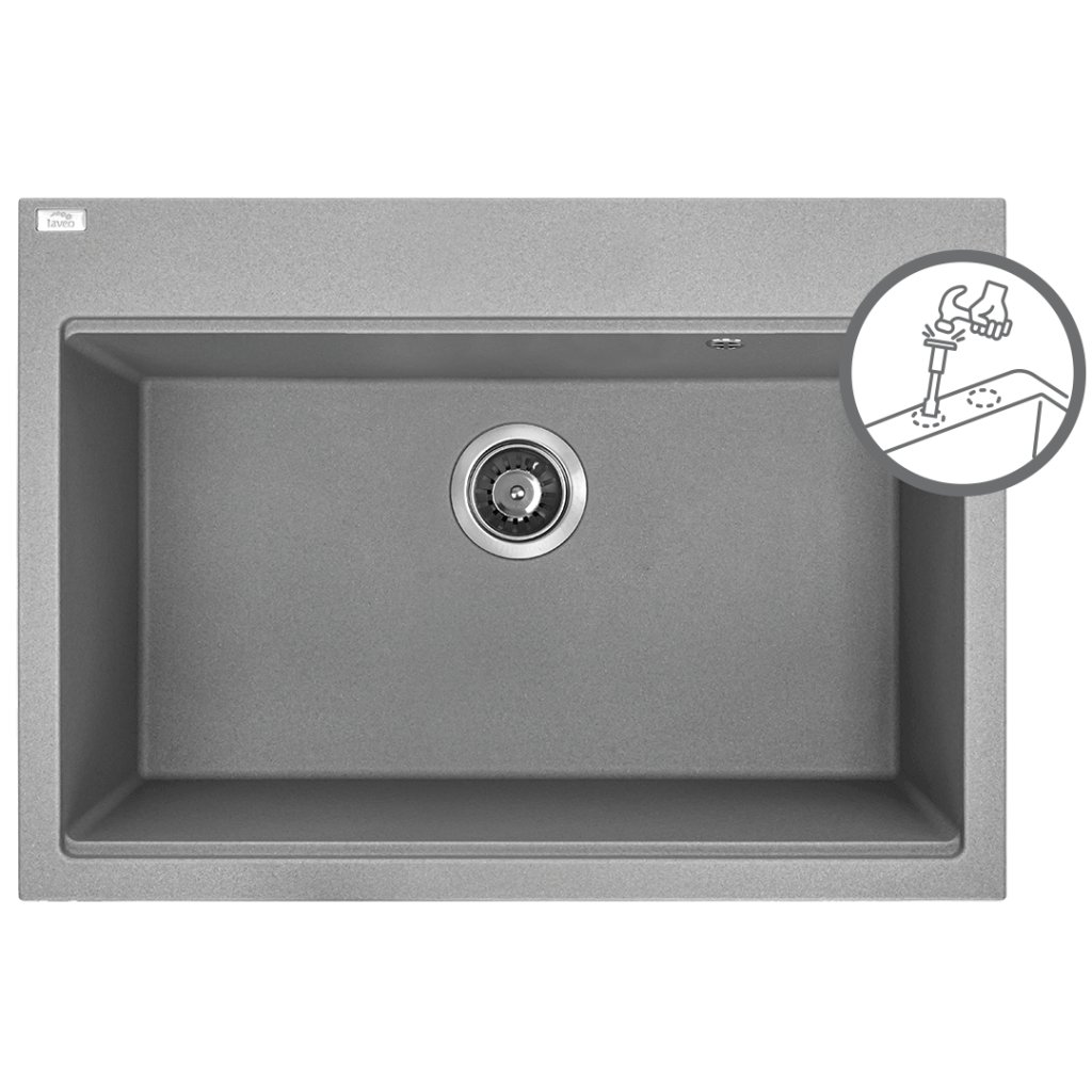 Laveo Tau, chiuveta granit cu 1 camera 700x500x215 mm, gri, LAV-SBT_5107