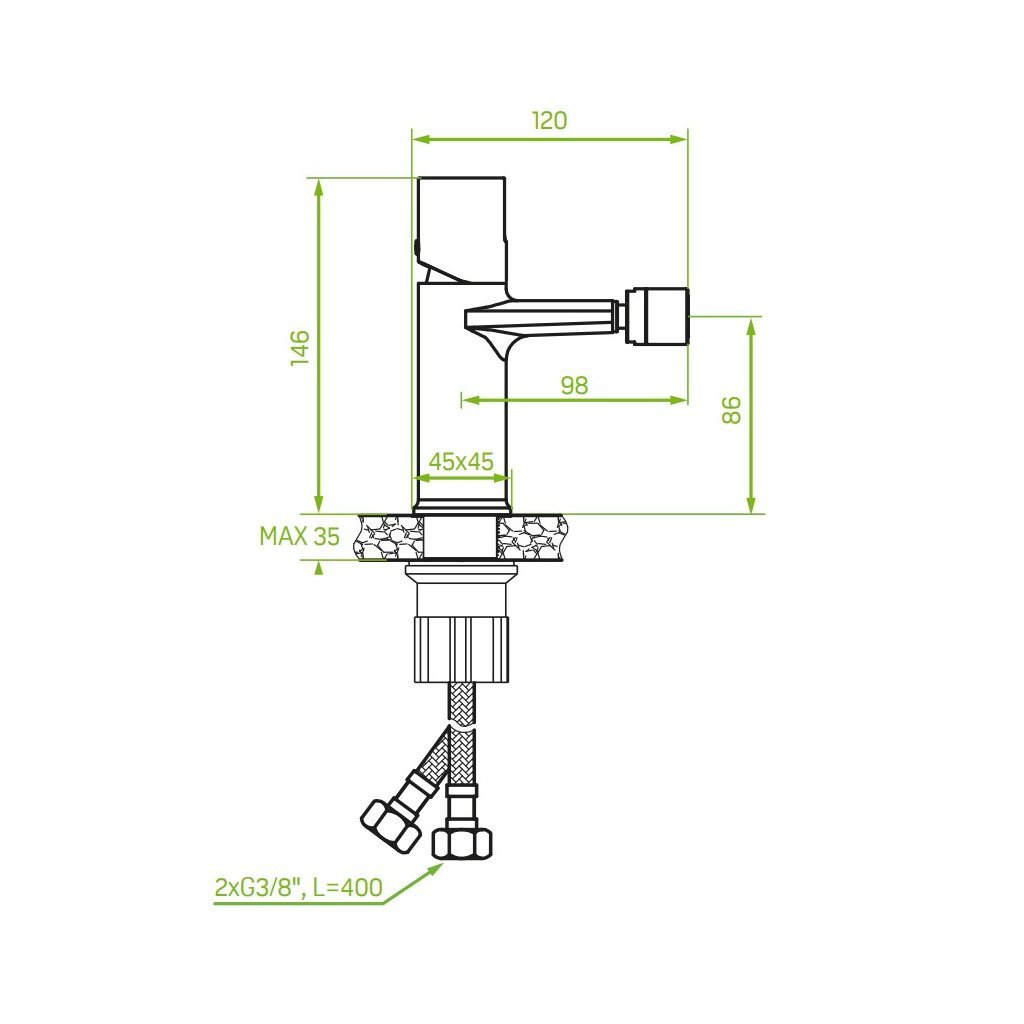 - Lungimea furtunurilor de conectare: 400 mm