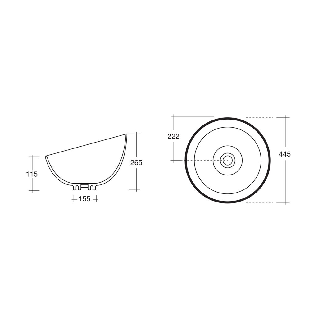 Lavoar ceramic de blat Sapho, DOME OBLIQUO, înalt, Ø 44,5 cm, alb, WH031