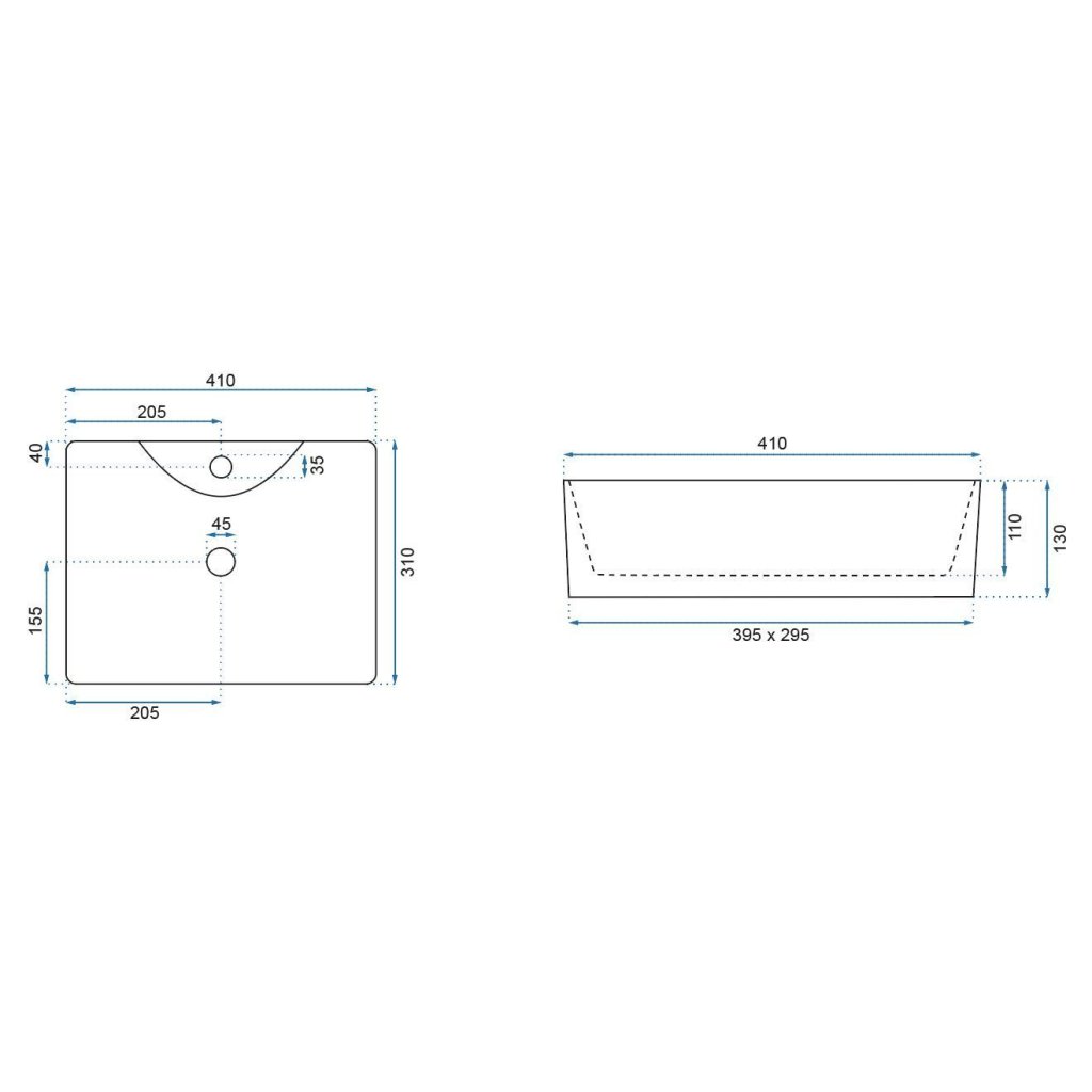 - Gaură de scurgere: 45 mm