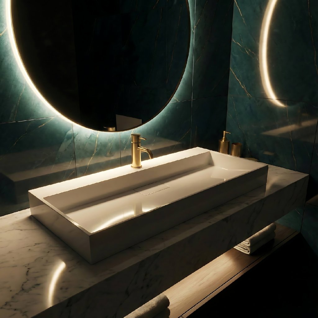 Recomandăm tratarea îmbinărilor cu peretele sau placa cu silicon de etanșare pentru a preveni pătrunderea umezelii.