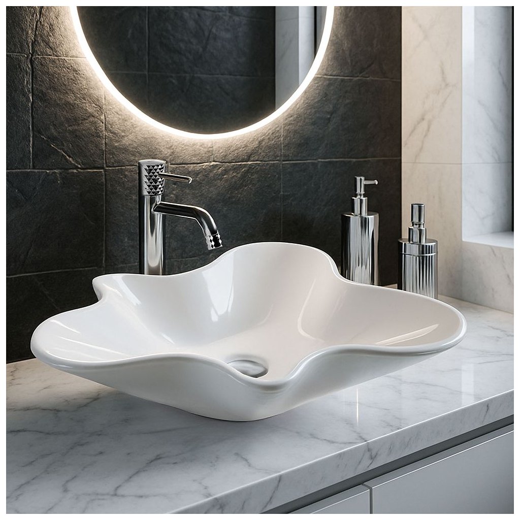 Lavoarul de blat Izolda este un design excepțional pentru persoanele care apreciază designul modern și formele unice. Forma sa neregulată, inspirată de liniile naturale, îl transformă într-un element decorativ frapant, care va schimba caracterul oricărei băi. Modelul este realizat din ceramică sanitară de înaltă calitate, ceea ce garantează durabilitate și longevitate în utilizarea zilnică. Suprafața netedă, albă ca zăpada, este ușor de curățat și își păstrează aspectul estetic timp de mulți ani. Lavoarul Izolda este ideal pentru amenajări moderne și minimaliste, precum și pentru proiecte în care accentul se pune pe originalitate și accente îndrăznețe.