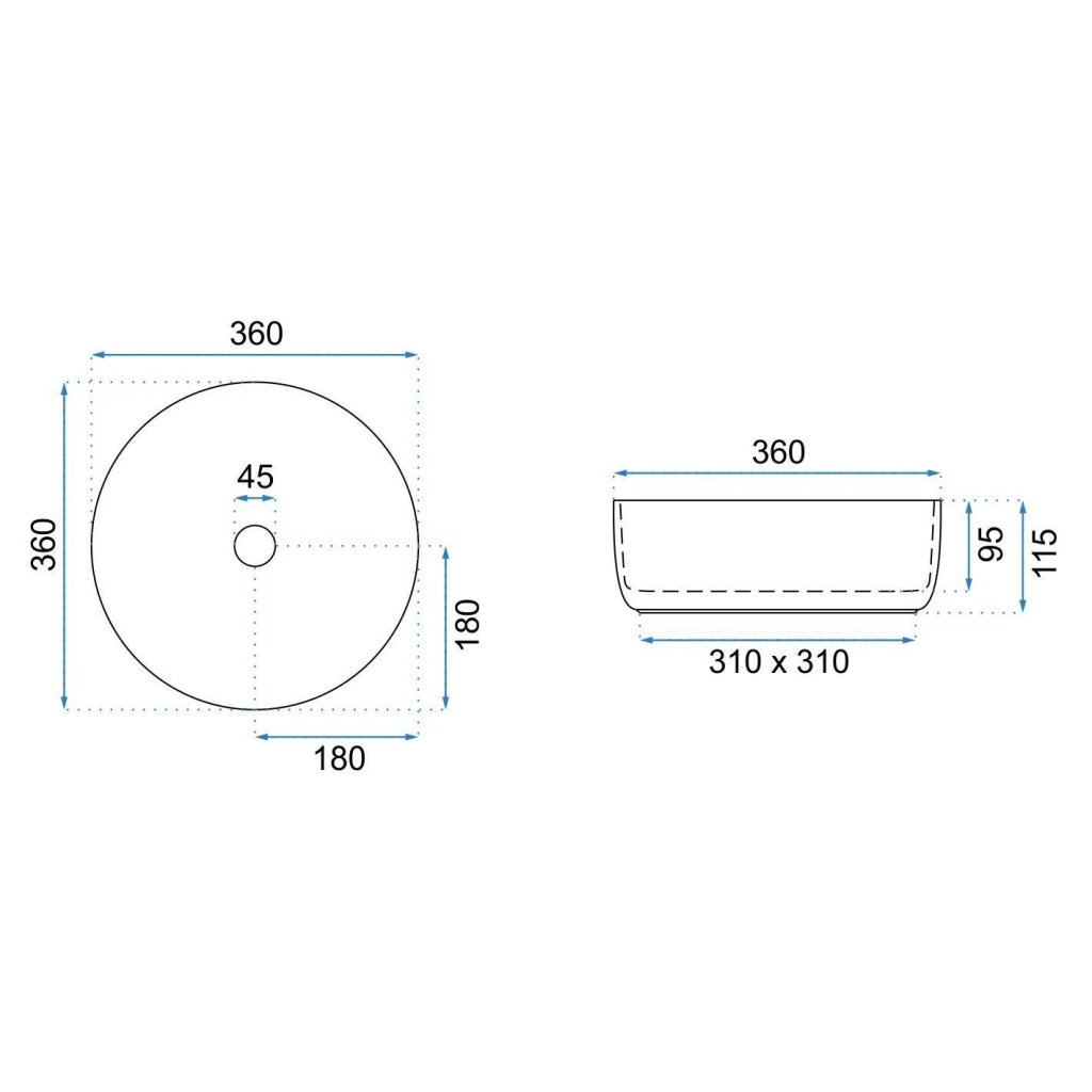 Lavoar de blat Rea Sami Brush Silver, 360x360x115 mm, alb-argintiu, REA-U3304