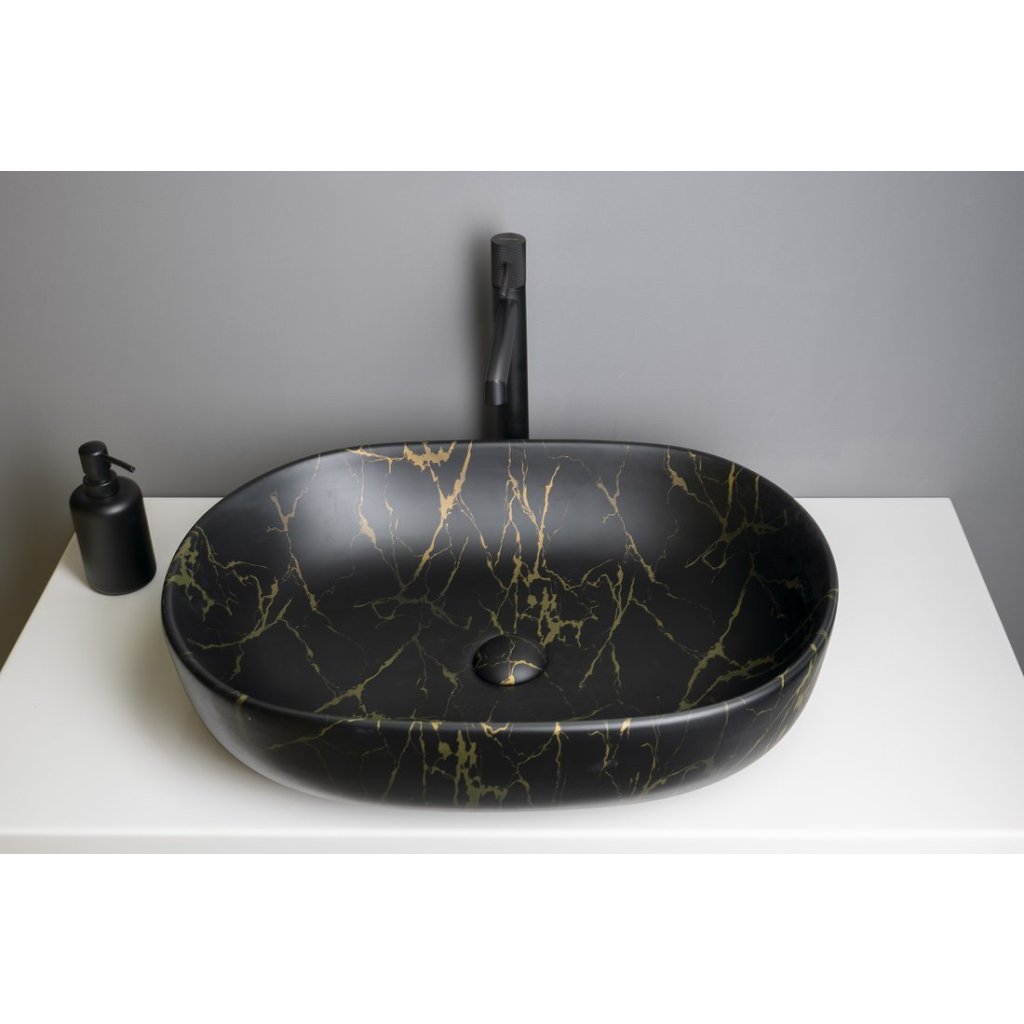 Lavoar de blat Sapho, CALEO, ceramică, 60x42cm, marmură portoro, CA590PT
