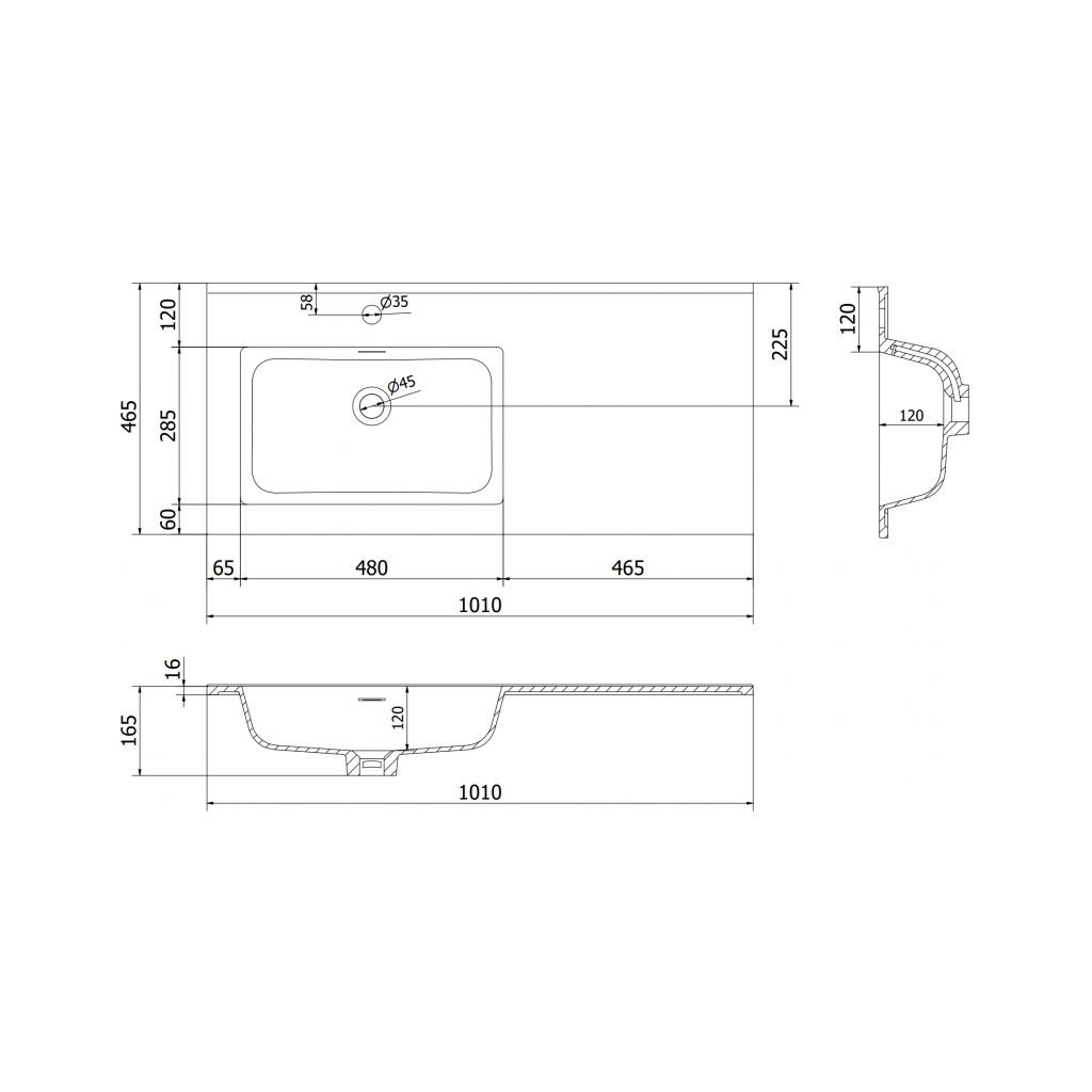 Date tehnice: Dimensiuni: 101x46,5x16,8 cm Adâncime: 11,9 cm Tip: Încastrat, partea stângă Culoare: Alb mat Material: Conglomerat Gaură preaplin: Da Gaură baterie: DaParametri suplimentari
