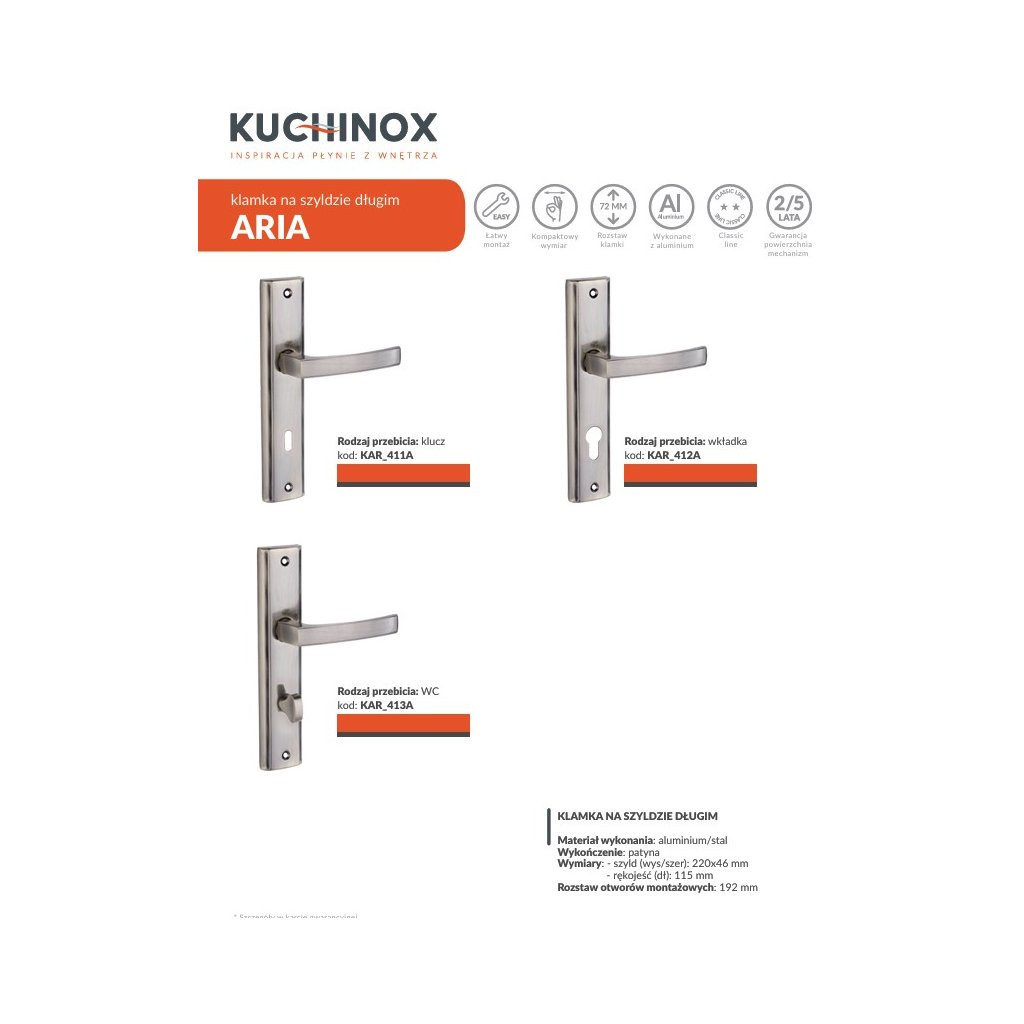 Mâner de ușă Kuchinox Aria pe feronerie lungă pentru cheie interioară, patină, LAV-KAR_411A