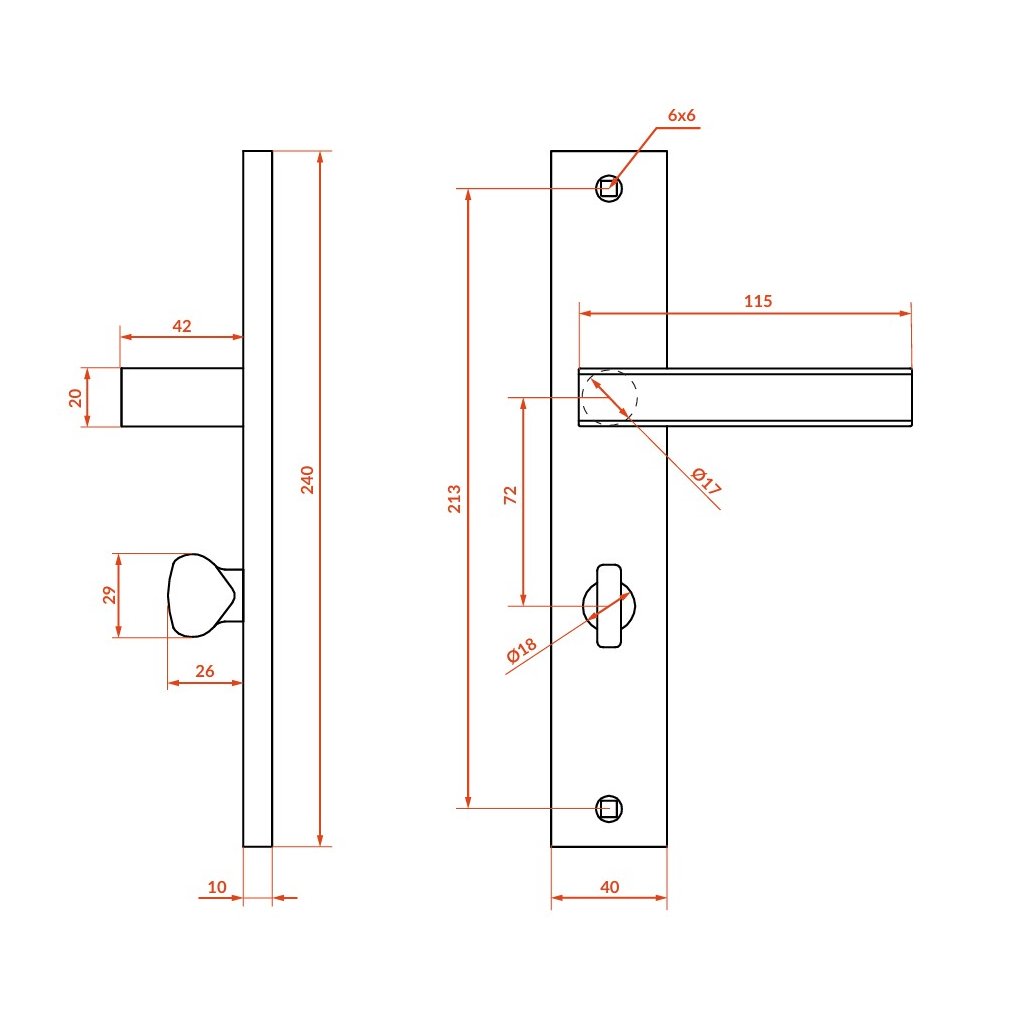 Mâner de ușă Kuchinox Aster pe feronerie lungă pentru încuietoare de toaletă, satinat mat, LAV-KAS_3M3A