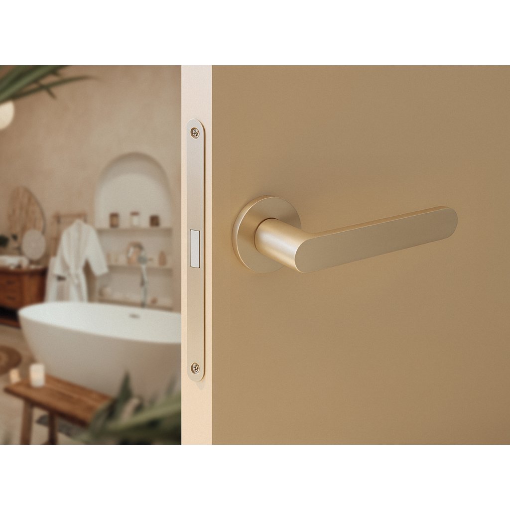 Mânerul Malaga cu finisaj auriu periat este sinonim cu eleganța și modernitatea, o completare perfectă pentru orice interior sofisticat. Designul său ergonomic oferă nu doar confort, ci și ușurință în utilizare la cel mai înalt nivel. Datorită utilizării unei rozete subțiri, mânerul arată extrem de modern și adaugă un accent elegant subtil, dar distinctiv, camerei. Finisajul auriu periat nu numai că conferă mânerului o notă exclusivă, dar îi conferă și o senzație de moale, care sporește senzația de confort în utilizarea de zi cu zi. Mânerul Malaga nu este doar un dispozitiv funcțional, ci și o decorațiune distinctivă ce subliniază caracterul modern al interiorului. Datorită designului și finisajului său unic, fiecare cameră câștigă eleganță și rafinament.