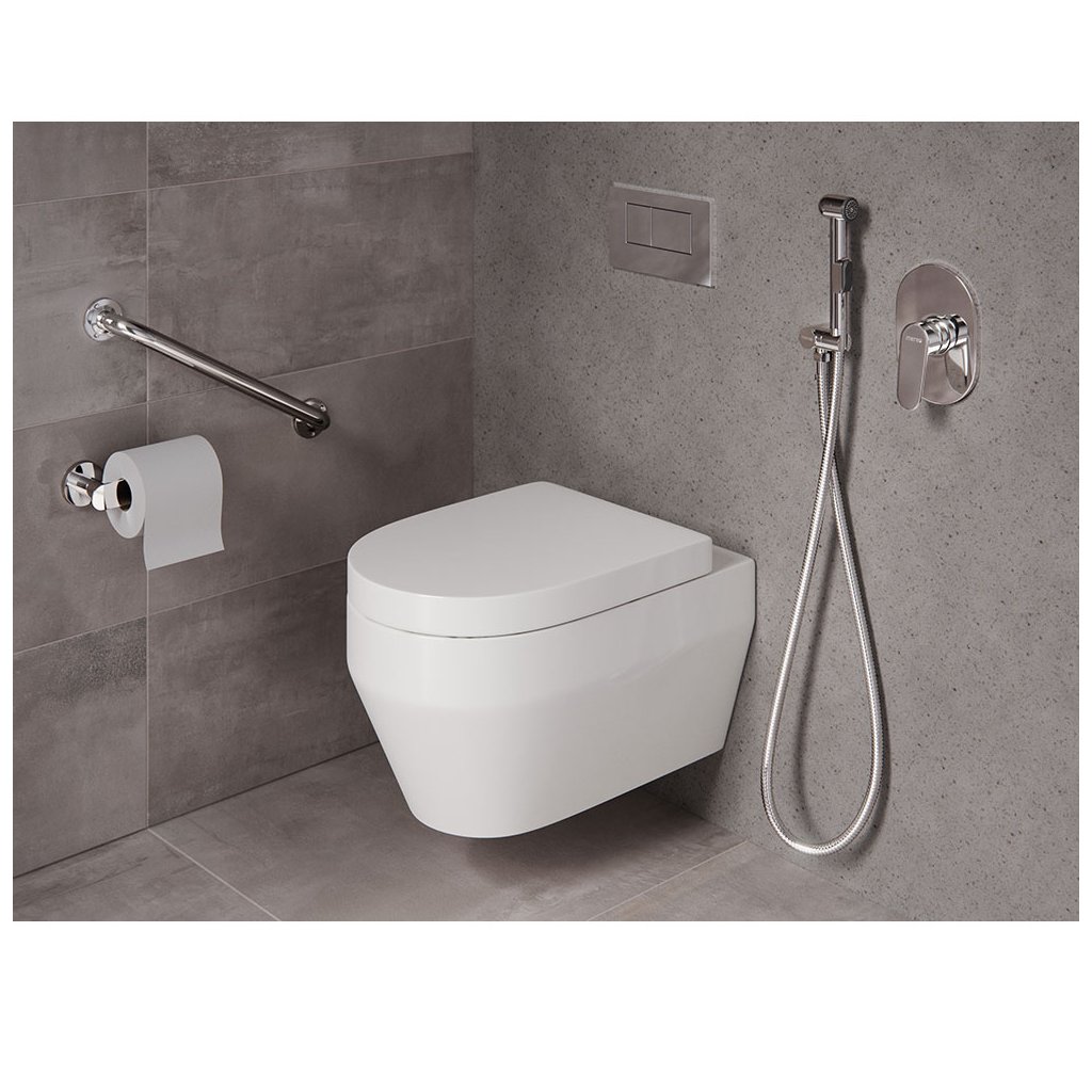 O soluție practică pentru toalete unde nu există loc pentru chiuvetă sau bideu. Acest robinet ascuns cu un spray pentru bideu și un furtun de 1,5 m este suficient pentru igiena intimă.Alimentarea cu apă trebuie să fie întotdeauna închisă la robinet după folosirea dușului cu bideu, astfel încât furtunul de duș să nu rămână sub presiune.