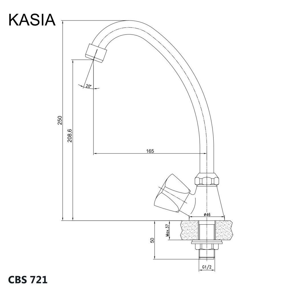 Mereo, Baterie chiuveta Stand, Kasia, inaltime baterie 250 mm, crom, MER-CBS721