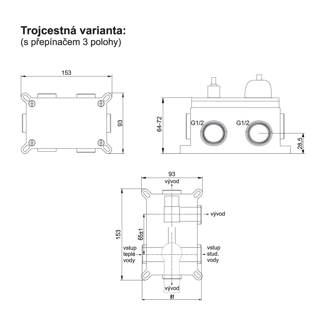 Mereo, Baterie de duș ascunsă cu comutator cu trei căi, Dita, Mbox, MER-CBE60157DB
