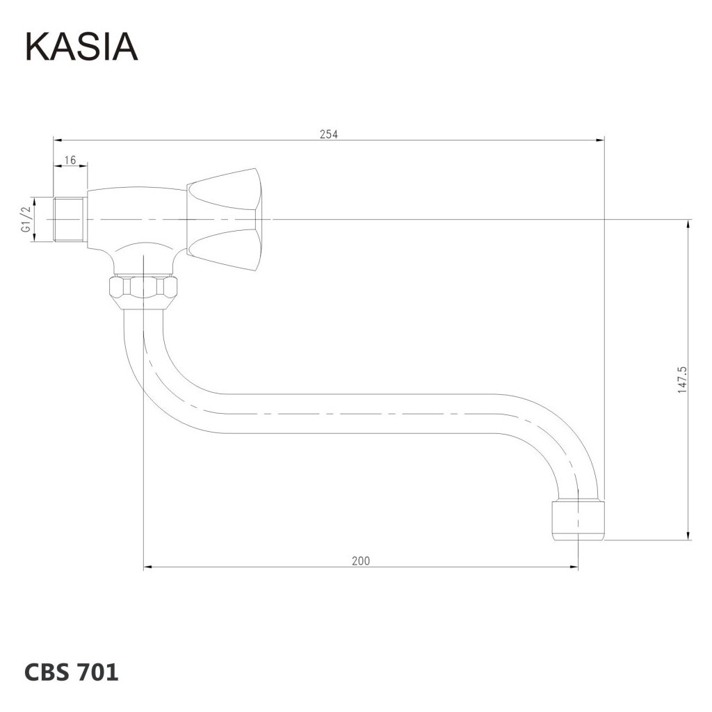 Mereo, Baterie de lavoar montată pe perete, Kasia, cu braț pivotant ø 18 mm - 200 mm, crom, MER-CBS701