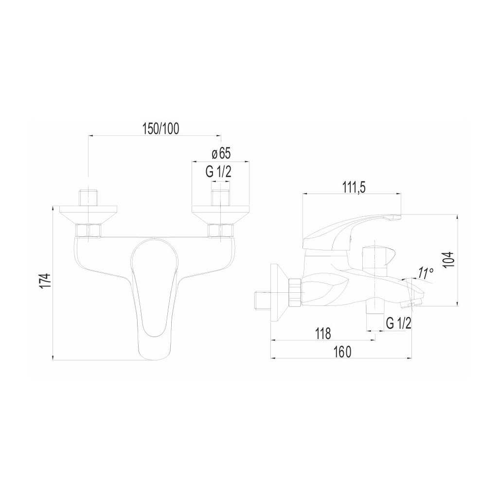 Mereo, Baterie pentru cada de perete, Sonata, cu comutator ceramic, fara accesorii, crom, MER-CB90104N