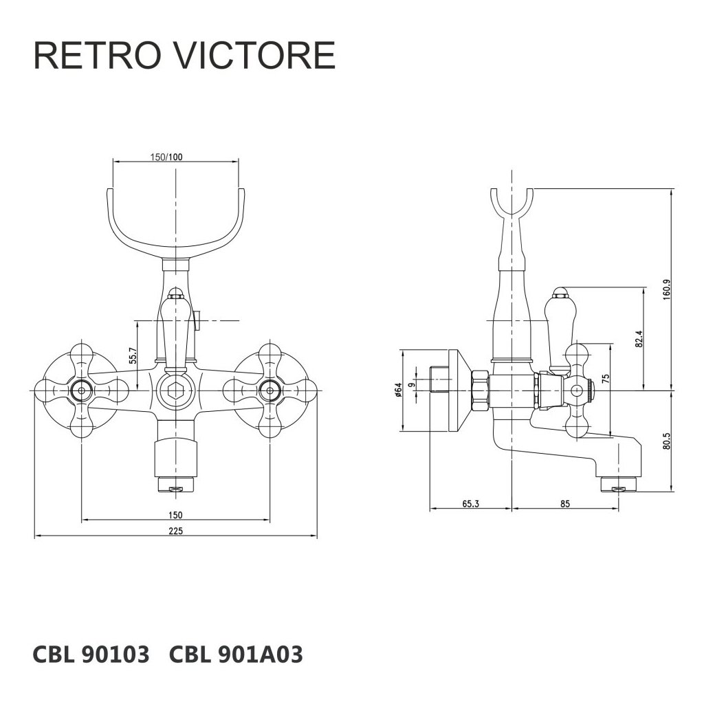 Mereo, Baterie pentru cada montată pe perete, Retro Victoria, 150 mm, fără accesorii, crom, MER-CBL90103