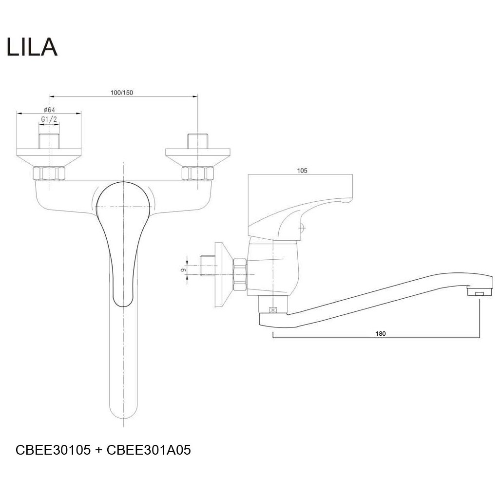 Această baterie de perete pentru chiuvetă provine din seria de baterii Lila, care reprezintă o soluție accesibilă, păstrând în același timp fiabilitatea și calitatea finisajului.- cartus ceramic 35 mm