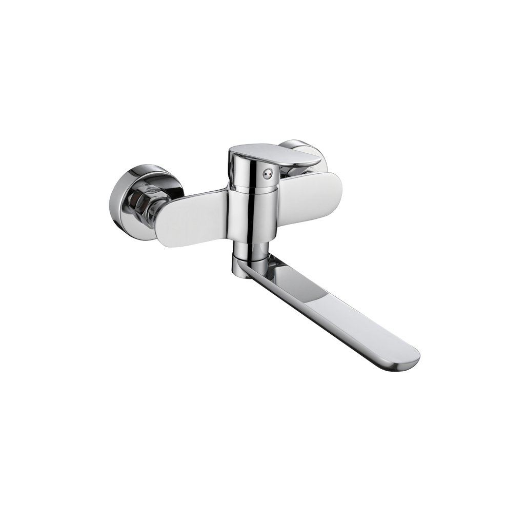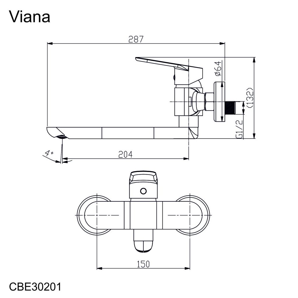 Mereo, Baterie pentru chiuvetă de perete, Viana, 150 mm, cu braț drept plat 200 mm, crom, MER-CBE30201