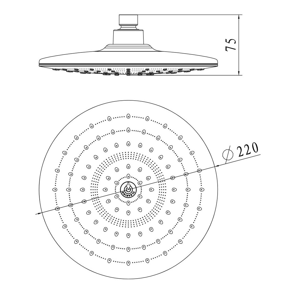 Cablul de duș cu placă cu diametrul de ø 226 mm se caracterizează printr-un design modern, variabilitate ridicată și, mai presus de toate, permite aproape orice combinație cu accesoriile programului de duș. Funcția constă în faptul că, după apăsarea pe placa de duș, din duze vor ieși „spini” roșii, care vor împinge toate depunerile. Placa poate fi rotită folosind o articulație pivotantă.Funcția duș:
