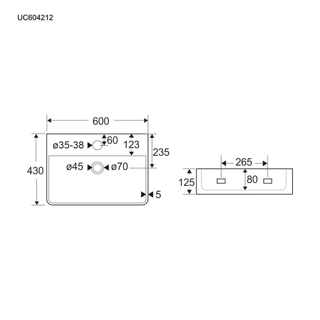 Mereo, Blat și chiuvetă suspendată cu preaplin, 600x430x125 mm, ceramică - se trimite pe palet, MER-UC604212