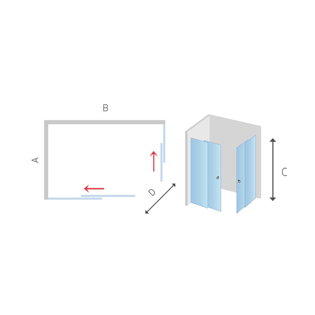 Mereo, cabina de dus, LIMA, dreptunghi, cada, crom ALU, sticla Point, MER-CK82422KM