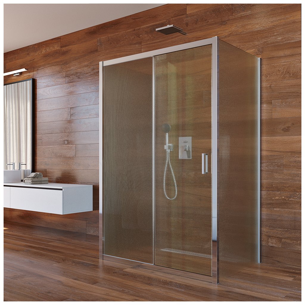 Mereo, Cabină de duș, Lima, dreptunghi, parte fixă x ușă glisantă x parte fixă, crom ALU, sticlă Point, MER-CK85612K
