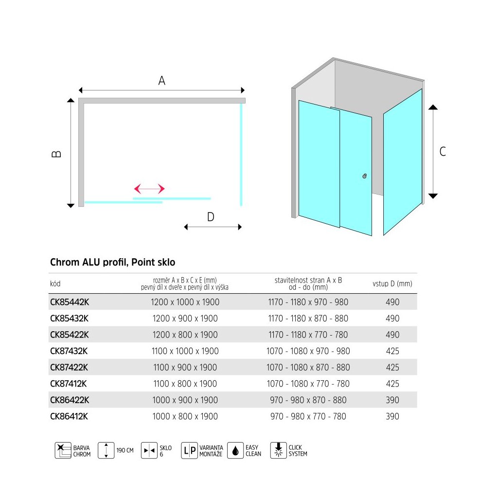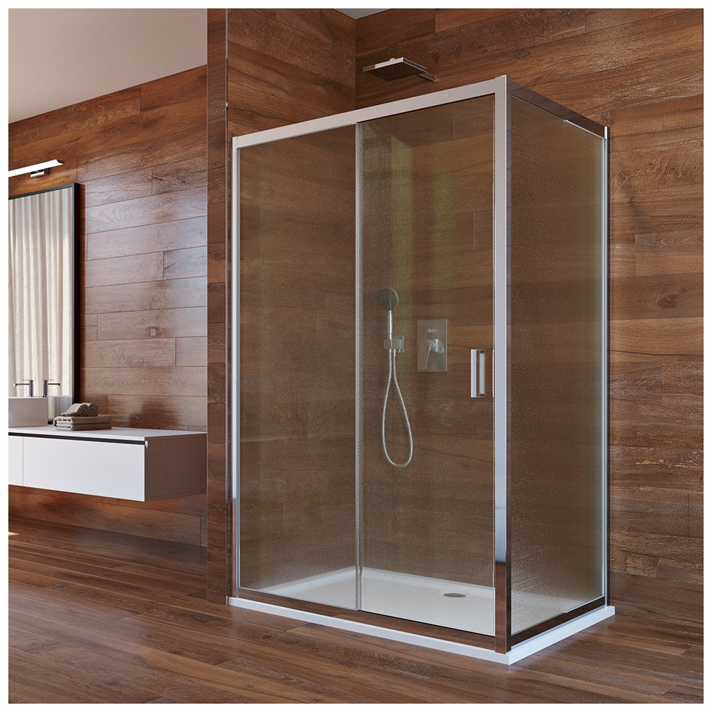 Mereo, Cabina de dus, Lima, dreptunghi, usa glisanta si parte fixa, L/P, crom ALU, sticla Point, MER-CK86412K