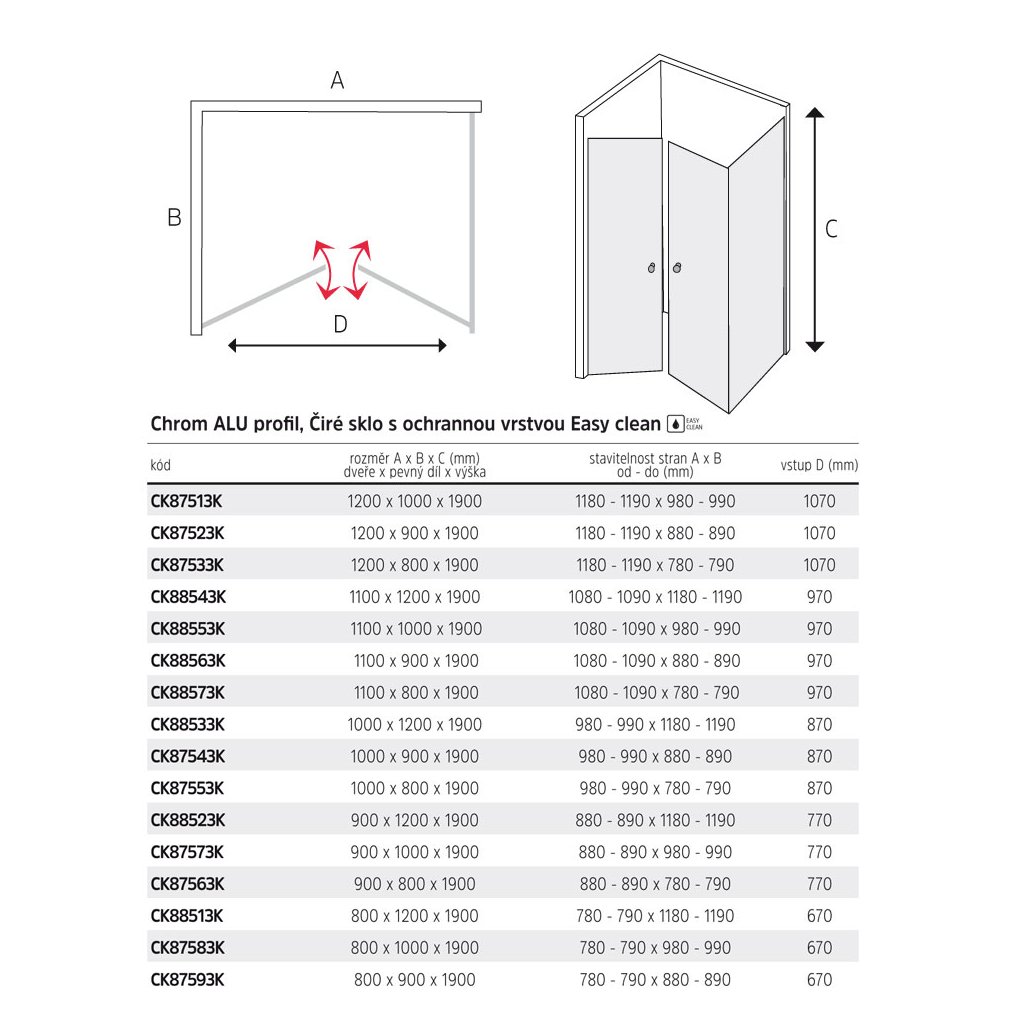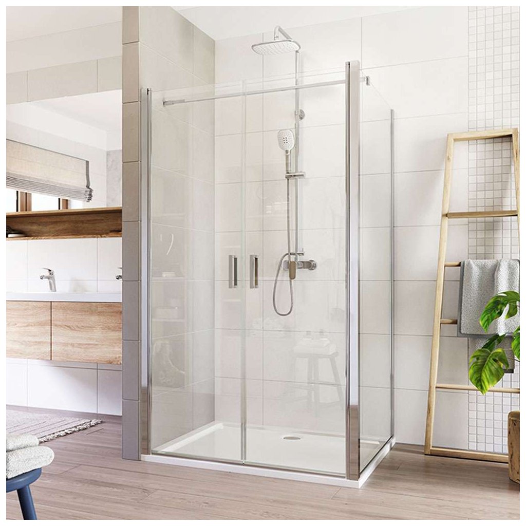 Mereo, cabină de duș, Lima, dreptunghi, ușă zburătoare și parte fixă, crom ALU, sticlă transparentă, MER-CK88563K