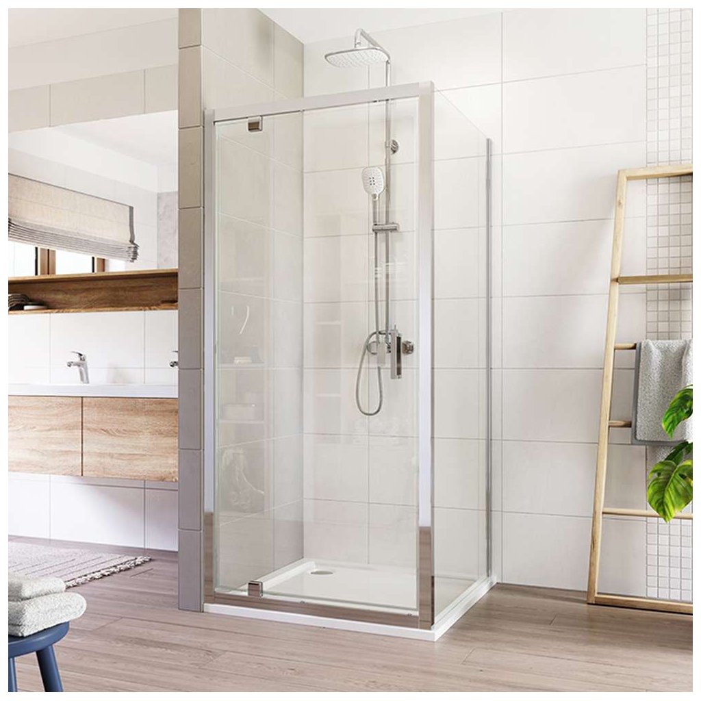 Mereo, Cabina de dus, Lima, patrata, usa pivotanta si parte fixa, crom ALU, sticla transparenta, MER-CK86913K
