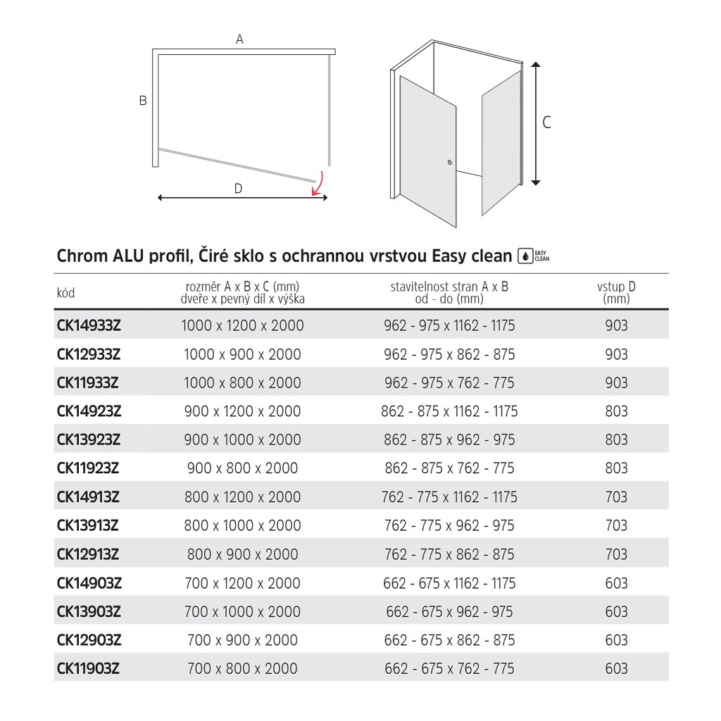 Populația mai înaltă va aprecia cu siguranță înălțimea colțurilor și a ușilor, care ajunge la 200 cm. Sticla securizată cu o grosime de 6 mm este tratată cu tratamentul de suprafață EASY CLEAN direct din fabrică. Acest strat folosește nanotehnologie, este hidrofug, previne depunerea murdăriei pe sticlă, iar sticla este astfel ușor de curățat. Stratul este rezistent la produsele de curățare utilizate în mod obișnuit pentru geamuri și umpluturi de sticlă.