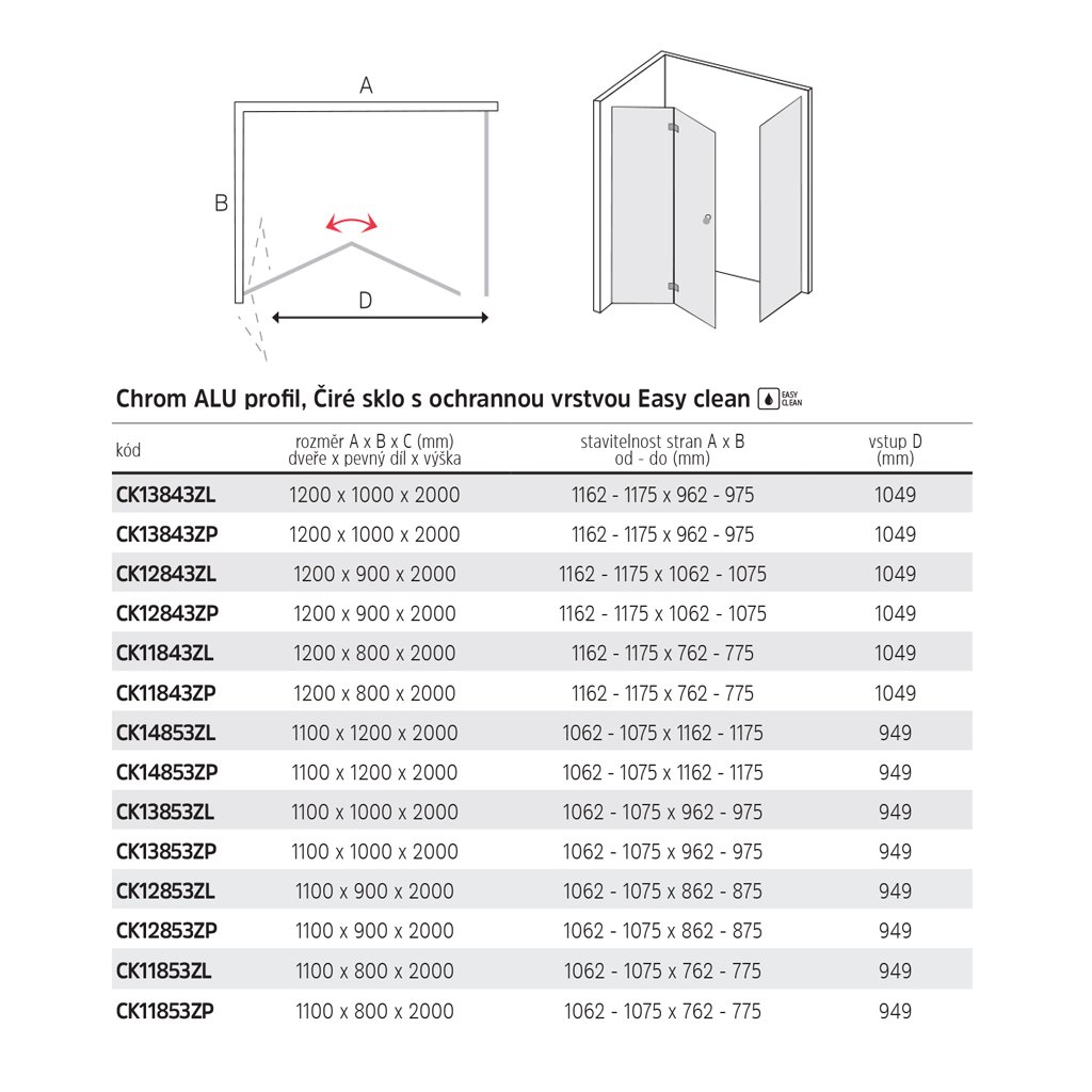 Populația mai înaltă va aprecia cu siguranță înălțimea colțurilor și a ușilor, care ajunge la 200 cm. Sticla securizată cu o grosime de 6 mm este tratată cu tratamentul de suprafață EASY CLEAN direct din fabrică. Acest strat folosește nanotehnologie, este hidrofug, previne depunerea murdăriei pe sticlă, iar sticla este astfel ușor de curățat. Stratul este rezistent la produsele de curățare utilizate în mod obișnuit pentru geamuri și umpluturi de sticlă.