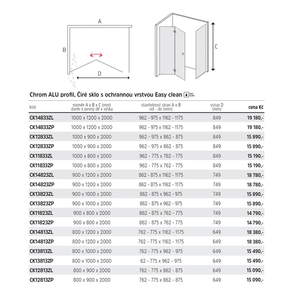 Populația mai înaltă va aprecia cu siguranță înălțimea colțurilor și a ușilor, care ajunge la 200 cm. Sticla securizată cu o grosime de 6 mm este tratată cu tratamentul de suprafață EASY CLEAN direct din fabrică. Acest strat folosește nanotehnologie, este hidrofug, previne depunerea murdăriei pe sticlă, iar sticla este astfel ușor de curățat. Stratul este rezistent la produsele de curățare utilizate în mod obișnuit pentru geamuri și umpluturi de sticlă.