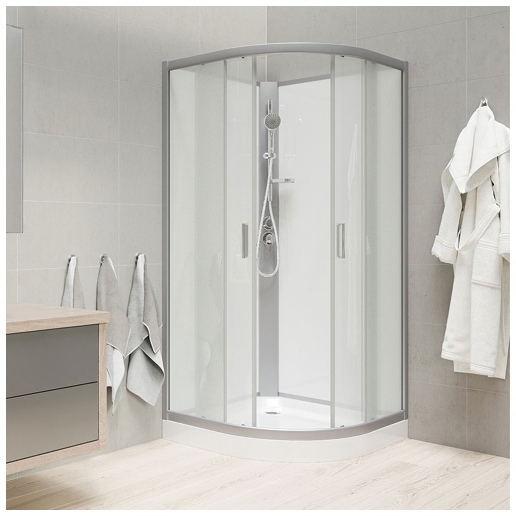 Cabina de duș aduce o nouă dimensiune a calității clasei economice. Grosimea sticlei securizate este de 4 mm. Sticla este perfect etanșată cu benzi de silicon. Dusul este prevazut cu usi glisante care au canale de inalta calitate cu posibilitatea de reglare perfecta. Opritoarele asigură impacturi minime la deschiderea și închiderea cabinei de duș.Galeriile inferioare permit rabatarea părții glisante a cabinei de duș și curățarea locurilor în mod normal inaccesibile. Etanșeitatea dintre părțile fixe și culisante este asigurată de ștergătoare și benzi de silicon pe ambele părți, dar nu este un produs închis ermetic.