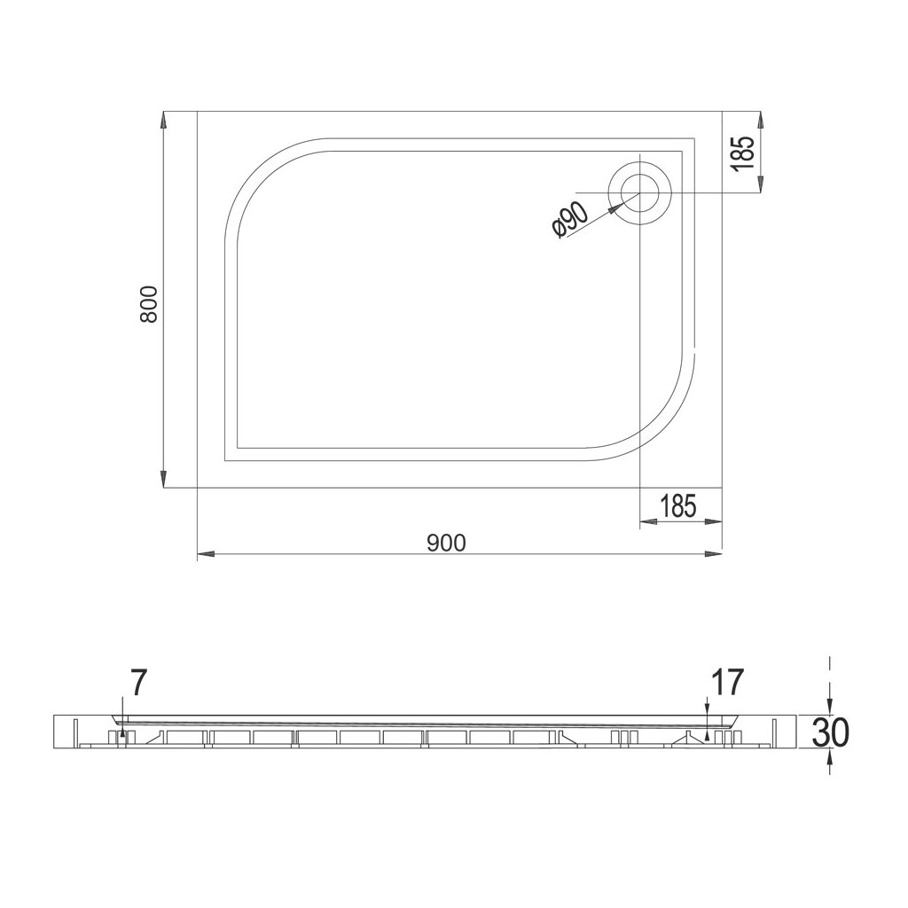 - orificiu pentru sifon ø 90 mm