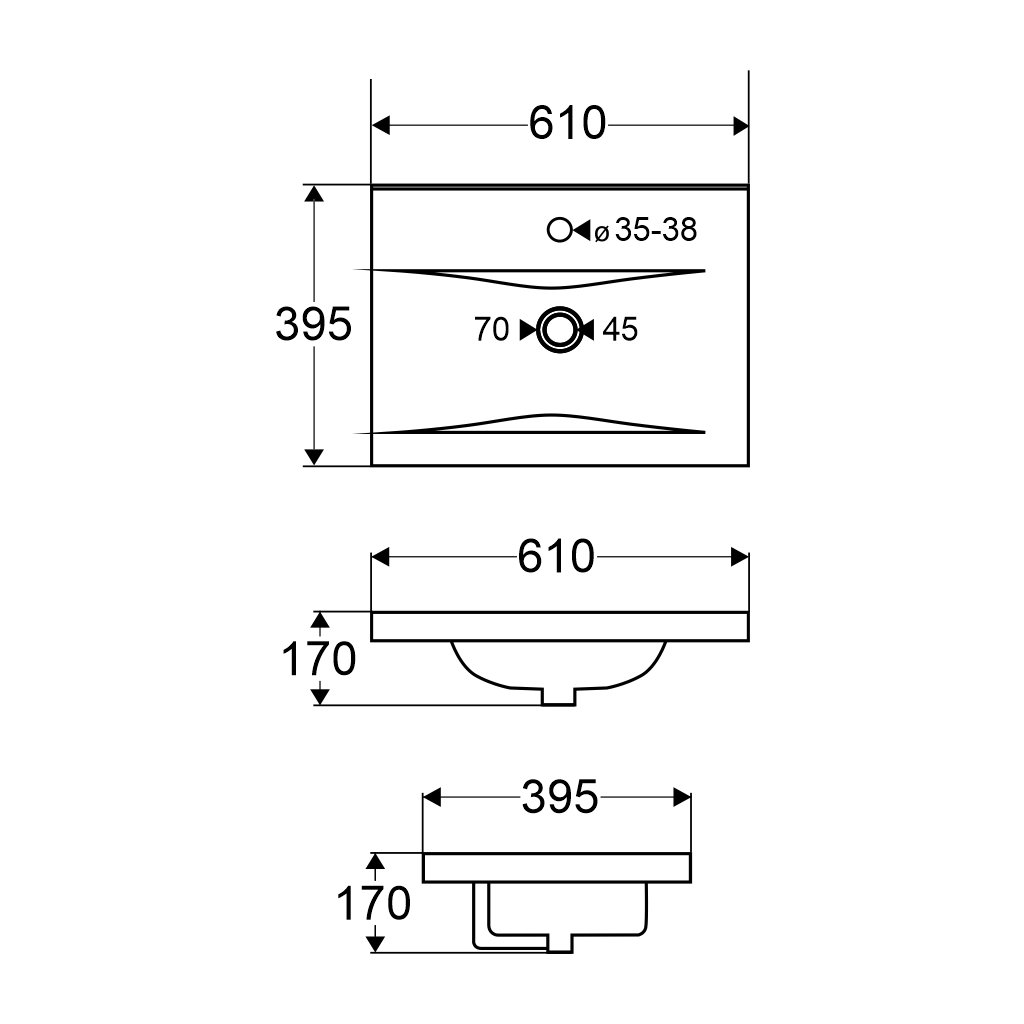 Mereo, Chiuveta de mobila, 61x39,5x17 cm, ceramica, alb, MER-UC6139