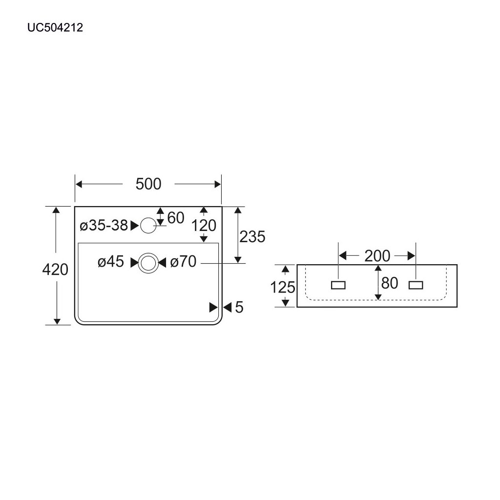 Mereo, Chiuvetă pe blat și pe perete cu preaplin, 500x420x125 mm, ceramică - se trimite prin colet, MER-UC504212P