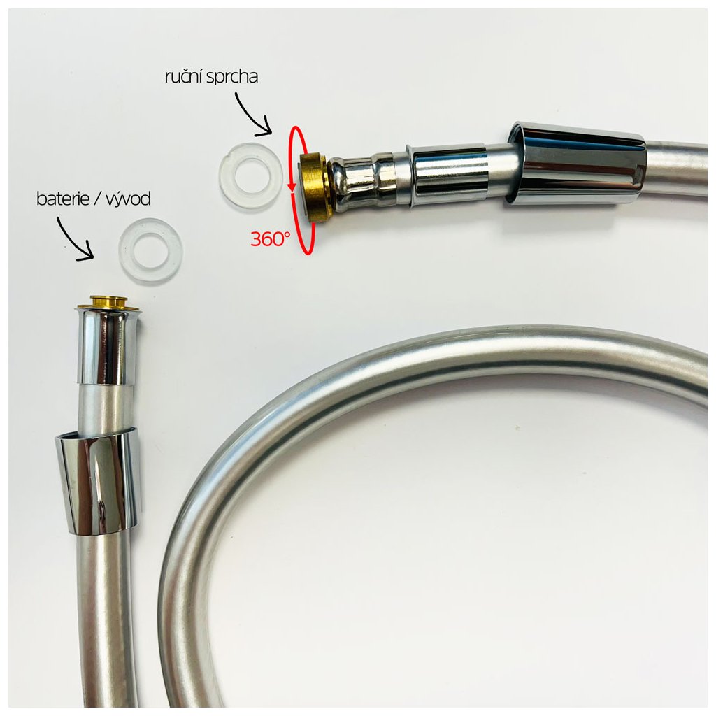 - Anti-torsionare: sistem anti-torsionare furtun - situat pe partea cu conul mai lung, montat pe dușul de mână
