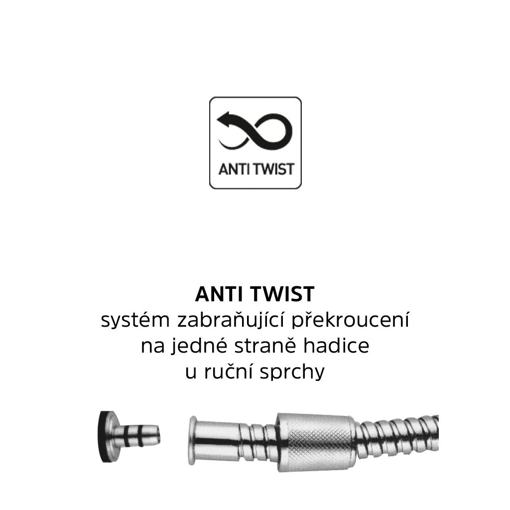 - Anti-torsionare: sistem anti-torsionare furtun - situat pe partea cu conul mai lung, montat pe dușul de mână