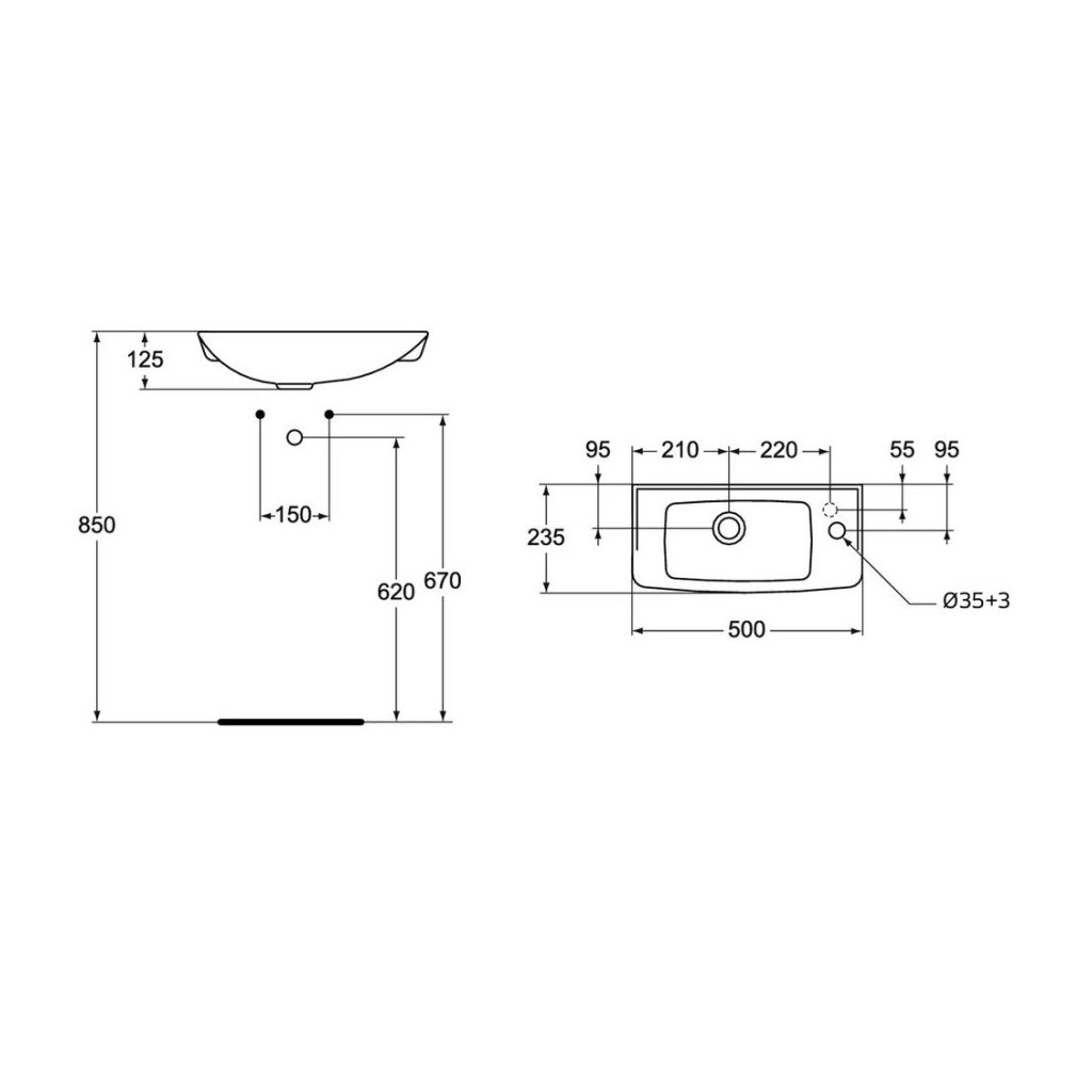 Chiuveta ceramica 50 cm cu orificiu pentru robinet si preaplin. Principalul avantaj al acestei serii este funcționalitatea și designul frumos.Chiuveta se livreaza separat fara baterie si capac.