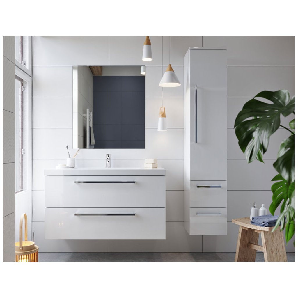 Simplitate, eficiență, eleganță. Acestea sunt principalele numitori comuni ai mobilierului de baie Bino, care va decora orice baie. Datorită combinației dintre inovație și o abordare fiabilă, se creează mobilier de înaltă calitate și foarte modern. Combinațiile de culori asigură că mobilierul se va potrivi cu orice tip de baie. Două sertare cu extensie completă, cu glisiere cu închidere automată și amortizare puternică sunt foarte practice pentru utilizator. Dulapul se livrează asamblat.Parametri suplimentari