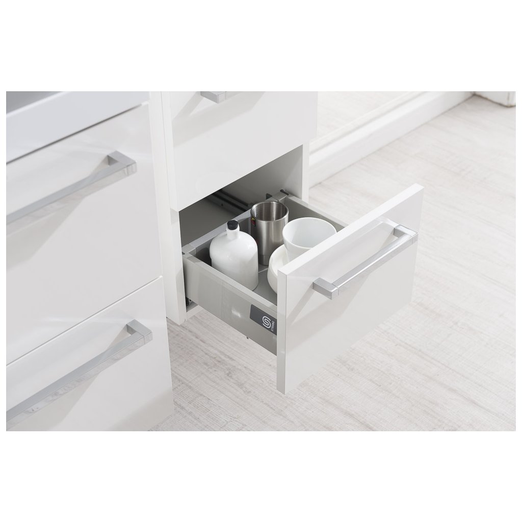 Simplitate, eficiență, eleganță. Acestea sunt principalele numitori comuni ai mobilierului de baie Bino, care va decora orice baie. Datorită combinației dintre inovație și o abordare fiabilă, se creează mobilier de înaltă calitate și foarte modern. Combinațiile de culori asigură că mobilierul se va potrivi cu orice tip de baie. Două sertare cu extensie completă, cu glisiere cu închidere automată și amortizare puternică sunt foarte practice pentru utilizator. Dulapul se livrează asamblat.Parametri suplimentari