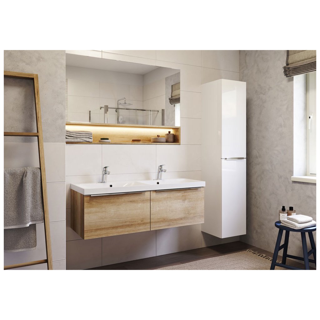 Mereo, Mereo Mailo, mobilier baie 170 cm înălțime, mâner cromat, Multidecor, alb lucios perlat, MER-CN594LPBIEL